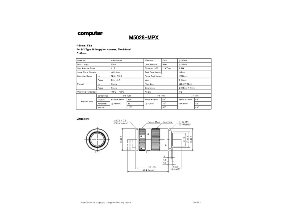 M5028-MPX Lens Technical Data 27. Januar 2026 165,8 kB PDF